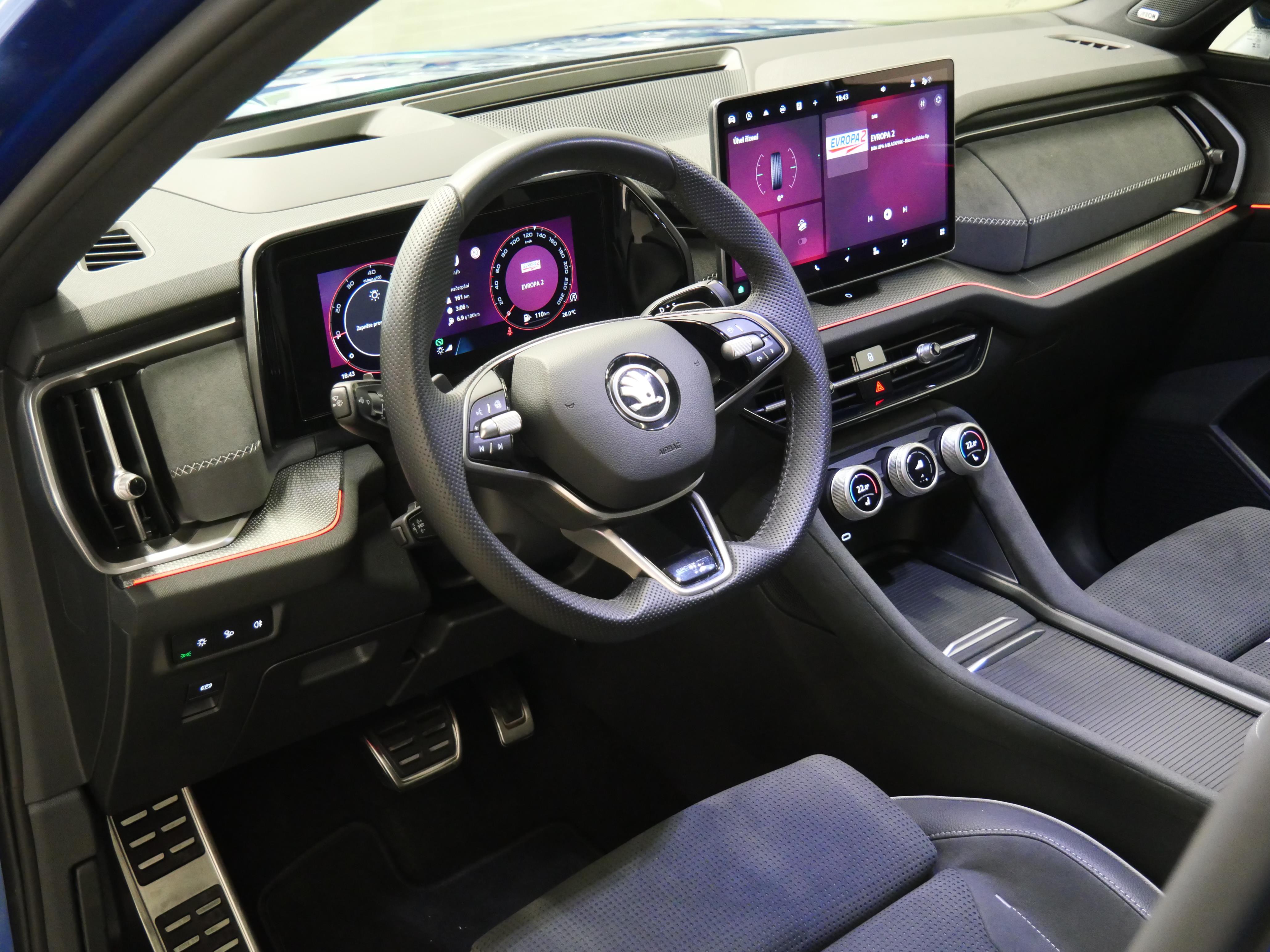 Jasný původ vozidla, vůz zakoupen jako nový v ČR, po 1. majiteli, prodloužená tovární záruka 5 let/100 tkm, možnost odpočtu DPH! Výbava Sportline: 20" originální alu kola, LED Matrix světlomety vč. LED denního svícení + asistent dálkových světel, 3-zónová automatická klimatizace, adaptivní tempomat do 210 km/h + speed limiter, přední + zadní parkovací senzory vč. 360° parkovací kamery + automatický parkovací asistent, virtuální cockpit, virtuál pedál (otevření 5 dveří pohybem nohy), tažné zařízení, vyhřívaná přední + zadní sedadla + volant, elektrický ovládaná přední sedadla s paměti, Head-Up displej, sound systém "Canton", panoramatická střecha vč. střešního okna, dešťový senzor, světelný senzor vč. funkce coming/leaving home, "Keyless-Entry" - bezklíčový vstup i start, kožený multifunkční volant vč. řazení na volantu, pohon všech kol, 7 míst k sezení, Smartlink, Bluetooth + handsfree vč. hlasového ovládání, autohold, bezdrátové nabíjení mobilního telefonu, navigační systém, volba jízdních režimu vč. adaptivní regulace podvozku s 2ventilovým tlumičem (DCC Plus). Asistenti: asistent rozjezdu do kopce, rozpoznávaní dopravních značek, detekce únavy řidiče, asistent jízdy s přívěsem, side + front + lane assist, regulace při jízdě ve svahu, modrá "Race" metalíza! 1AHC743. Kompletní nabídku všech vozidel naleznete na našich webových stránkách.